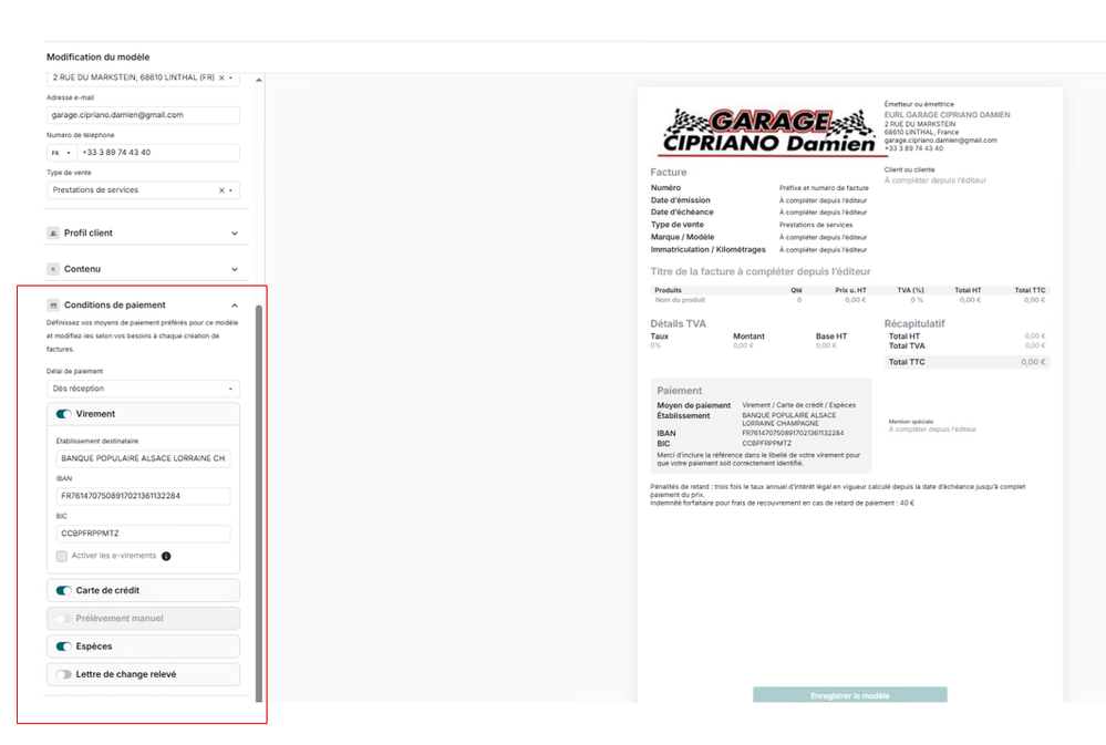 dans une facture client, pourquoi n'est -il pas possible d'indiquer "chèque" ?