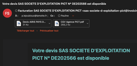 On dirait que vous utilisez le même modèle d’e-mail pour les envois de devis et de facture.