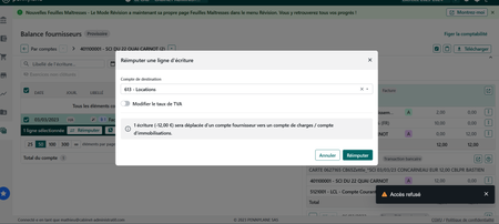 Bonjour, Lorsque j’essaie de réimputer un compte de classe 6 j’ai un message qui m’indique que l’accès est refusé. Pourriez-vous m’aider ?