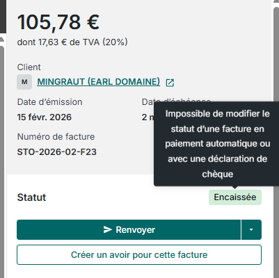 Exemple pour cette facture, je ne peux pas la passer en "non encaissé" car le prélèvement a été validé.
