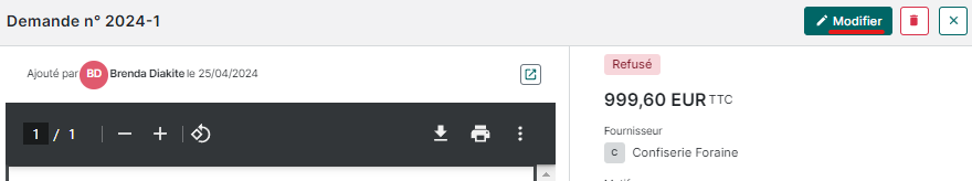 Pour cela, depuis la demande, il faudra cliquer sur Modifier :