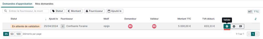 S’il s’agit bien d’une demande d’achat, bien que celle-ci ait été refusée dans un premier temps, il est possible de la valider à condition que le collaborateur la modifie 😊
