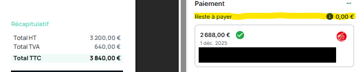 J'ai un problème avec l'affichage côté gestion du reste à payer de certaines factures. En effet j'ai une facture partiellement payée mais PL nous l'indique comme totalement encaissée ce qui pose un problème quant à la gestion des clients à relancer.