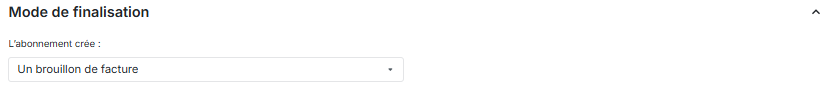 En effet, dans un premier temps, je vous invite à créer des abonnements, en mettant sur la facture uniquement les produits et services facturés périodiquement. Ensuite, je vous invite à bien opter pour le mode de finalisation : "Un brouillon de facture"