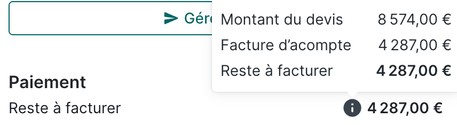 • Le solde restant à régler est bien mentionné lorsqu'on clique sur le devis