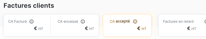 • Un encart pour nous indiquer le total de CA accepté encore non comptabilisé