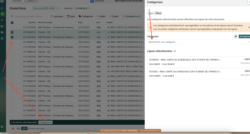 Ensuite, vous avez également la possibilité de catégoriser vos écritures de produits.