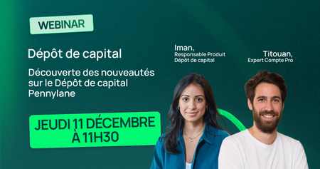 Le dépôt de capital est une étape clé dans la création d'entreprise et représente une opportunité d'acquisition majeure pour les cabinets d’expertise comptable. Pourtant, la majorité des cabinets n'ont pas (encore) testé le dépôt de capital intégré à Pennylane. Venez découvrir comment gagner du temps sur cette démarche et offrir une expérience fluide à vos clients entrepreneurs. S'inscrire Au programme Présentation des chiffres clés du dépôt de capital Démonstration complète du dépôt de capital côté cabinet et dirigeants, et de ses dernières nouveautés L’offre Pennylane pour les cabinets Témoignage de cabinets utilisateurs Session de questions-réponses Pour qui ? Aux comptables et experts-comptables, ainsi qu'aux équipes juridiques travaillant en cabinet. Vos intervenants Iman - Responsable Produit Dépôt de capital Titouan - Expert Compte Pro Rendez-vous jeudi 11 décembre pour découvrir, échanger, poser vos questions et optimiser votre accompagnement des créateurs d'entreprise. Pour rappel cet événement n'est pas une formation mais une présentation des fonctionnalités de dépôt de capital dans Pennylane.58Vues0like0CommentaireJeudi 4 décembre à 11H - Facture Électronique : préparez votre cabinet à l’intégrer dans son quotidien dès maintenant
