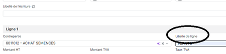 Bonjour, Est-ce que c'est possible de mettre un libellé de ligne sans avoir à ventiler la facture ou à procéder à une sauvegarde puis utiliser les "3 petits points" dans l'écriture. Je voudrais savoir si c'est possible d'avoir le libellé de l'écriture et de suite en dessous le libellé de ligne avec n° de compte (sans aucune autre manip à faire)Répondu58Vues1like1CommentaireFACTURE VENTILEE