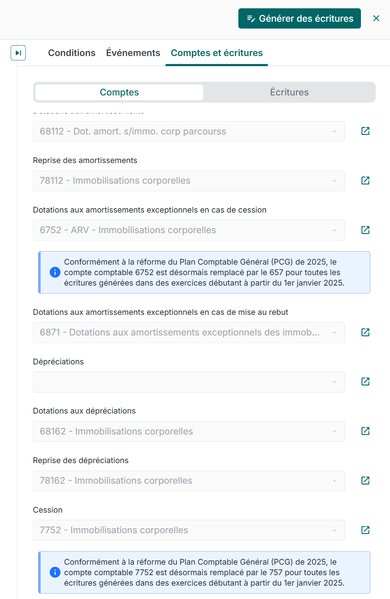 Bonjour, J’ai la situation suivante : J’ai repris une comptabilité sur PL J’ai donc importé le fichier EXCEL avec l’état actuel des immos Je crée maintenant les dotations de l’exercice PL calcule les dotations et réalise des écritures Jusqu’ici tout marche sur les roulettes. J’ai bien la valeur d’acquisition et la VNC au début de l’exercice qui correspond. Il y a juste un tout petit détail. Le choix des 280 xxx et 281 xxx est diffèrent sur PL, ce qui fait que les valeurs de n-1 ne matchent pas forcement avec les valeurs en n. Exemple (un immeuble) : Avant 281 310 (au 01/01/n) : 10 000 + Dotation n 2 500 281 310 (au 31/12/n) : 12 500 Après (avec PL) 281 310 (au 01/01/n) : 10 000 + Dotation n 0 281 310 (au 31/12/n) : 10 000 Mon cumul historique ne bouge plus. Par contre PL crée des nouveaux sous comptes pour chaque composant de l’immeuble 281 311 + Dotation n 500 281 312 + Dotation n 900 281 313 + Dotation n 900 281 313 + Dotation n 200 Dotation n cumulée 2 500 Je vais maintenant faire l’OD manuellement, splitter les reports de n-1 selon l’objet et les affecter au 01/01/n sur les nouveaux comptes. Suggestion : Prévoir une possibilité pour matcher automatiquement les comptes de dotation avec le cumul historiques repris ?Répondu585Vues2likes10Commentaires